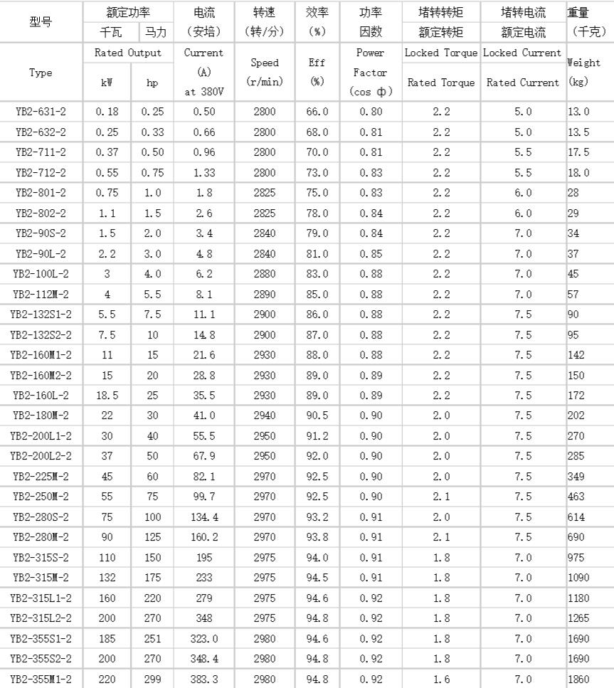 小功率防爆電機(jī)主要技術(shù)參數(shù)