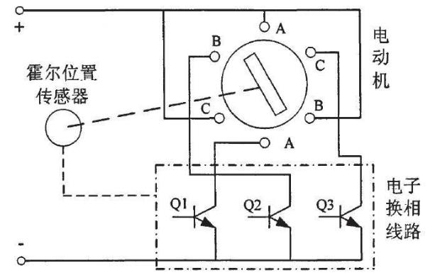 無刷直流電機控制電動機定子繞組通電的順序和時間,功率邏輯開關單元將電源功率分配給定子繞組,使電機產生轉矩。霍爾位置檢測器可以檢測轉子磁極相對于定子繞組的位置信號,進而控制邏輯開關單元的繞組順序和時間,當定子繞組的某一相通電時,該電流與轉子磁極相互作用產生轉矩,驅動轉子旋轉,再由霍爾位置傳感器將轉子磁鋼位置變換成電信號,去控制電子開關線路,從而使定子各相繞組按一定次序導通,定子相電流隨轉子位置的變化而按一定的次序換相。由于電子開關線路的導通次序與轉子轉角同步,因而起到了機械換向器的換向作用。