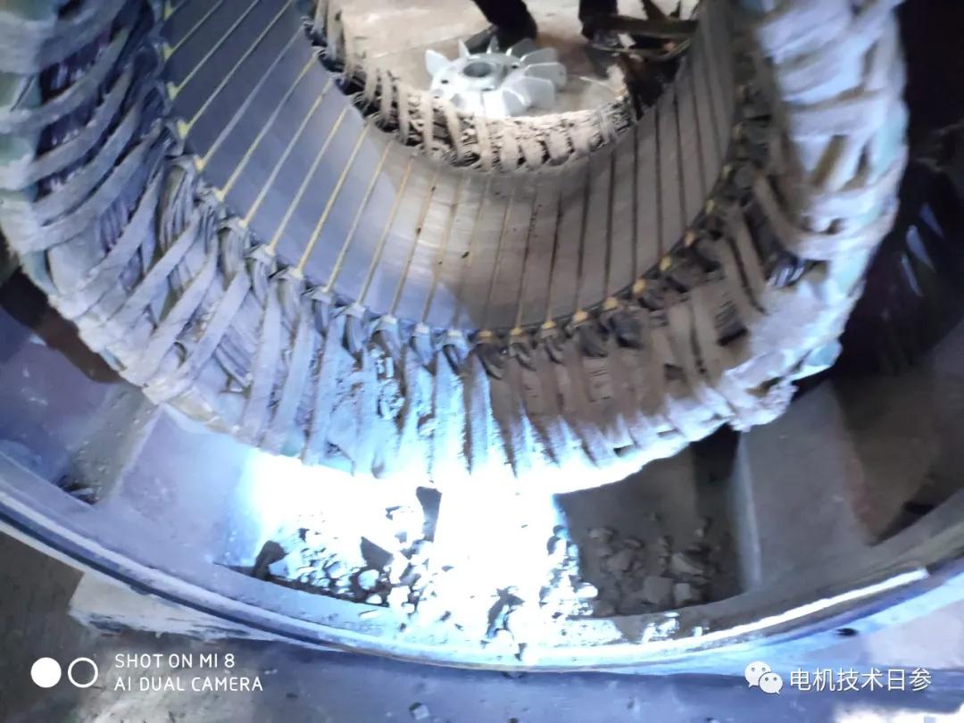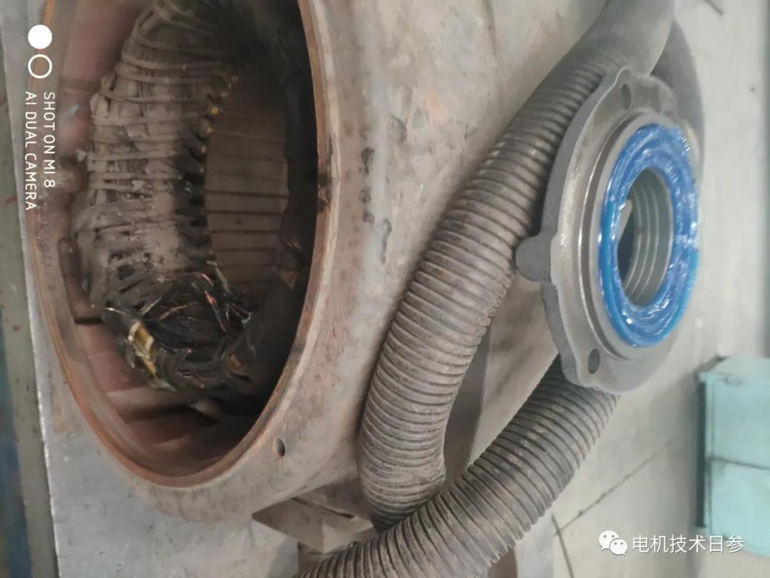 在故障電機的處理和分析過程中,發現IP23電機的繞組被污染和損壞,電機的繞組部分被灰塵覆蓋,特別是一些帶有導電材料的灰塵,對繞組的侵蝕更加嚴重。當電機繞組被灰塵覆蓋時,繞組的散熱會受到嚴重阻礙。當灰塵中有導電物體時,也會導致電機繞組接地、相間擊穿等質量故障。如果灰塵進入定子和轉子之間的氣隙,或者進入軸承系統,也可能導致電機掃膛的問題。