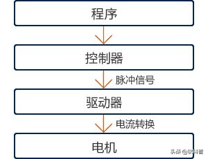 程序控制器(脈沖信號)驅動器(電流轉換)電機