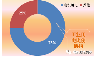 電極端電機用電量占我國電極端的比重最大,約占工業用電量的75%,占全國總用電量的60%。