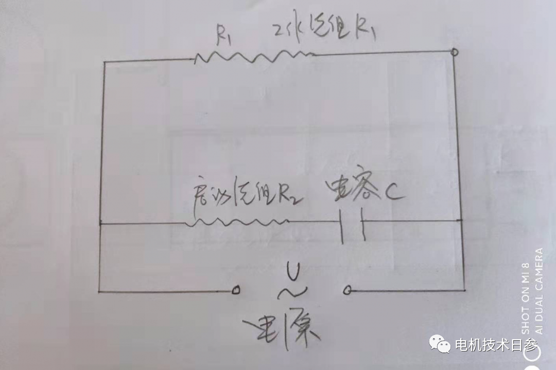 由于電容器的相移效應明顯,只要在起動繞組中串聯適當容量的電容器,兩繞組之間的電流相位差就可以接近90,此時合成的旋轉磁場接近圓形旋轉磁場,這樣電機的起動轉矩大,起動電流小。