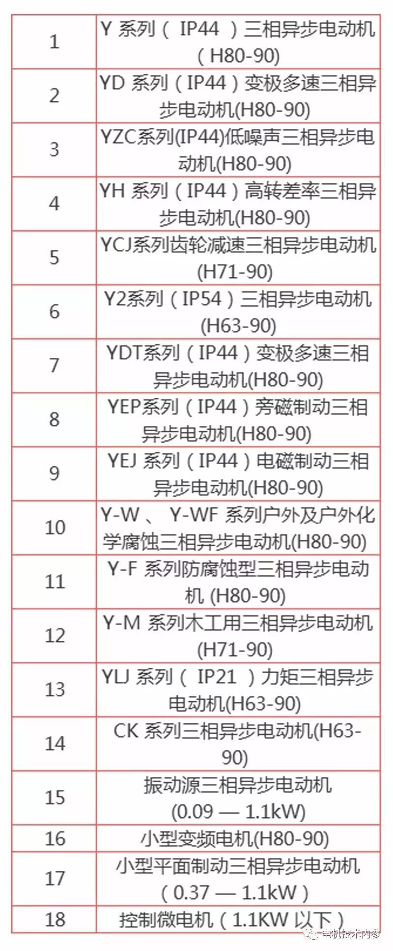 1.1KW以下未列入CCC認(rèn)證目錄:的電機(jī)產(chǎn)品清單