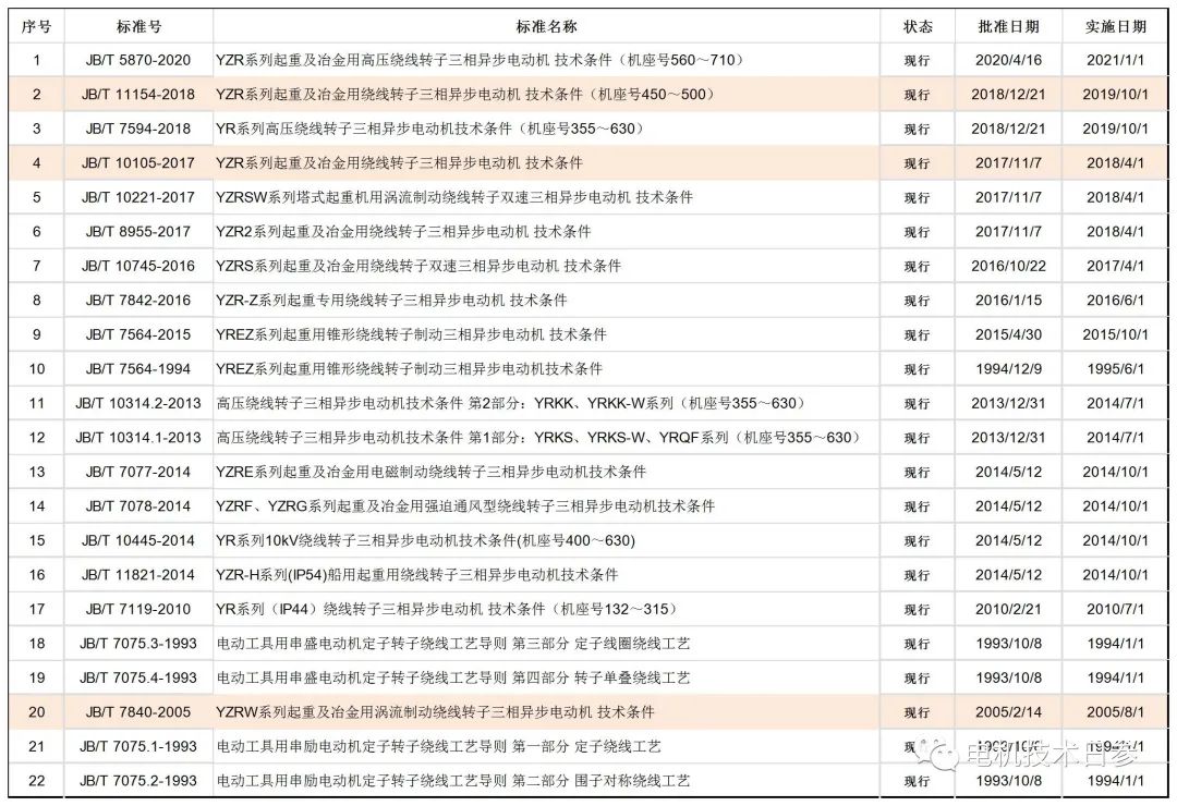 對于電機產品,采用的技術標準大多是行業標準,也有少數國家標準。本文收集了3個國家標準目錄(見圖1)和22個行業標準目錄(見圖2),涉及電機產品技術條件、繞組技術等相關內容。